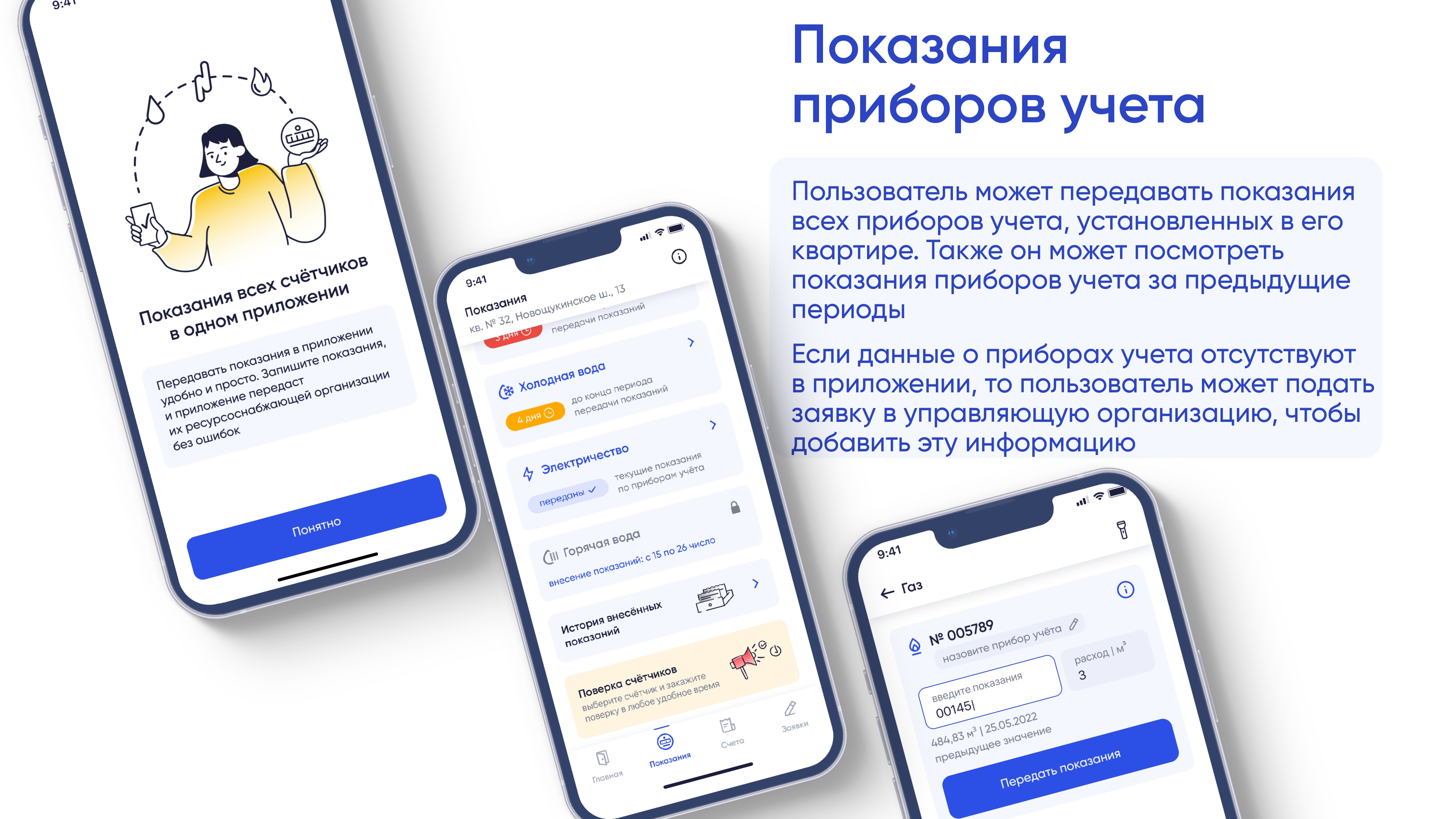 Приборы учета можно подписать: это удобно для тех собственников, у которых в квартире больше одного счетчика на каждый ресурс. Если же у пользователя не отображаются приборы учета или данные некорректны, он может подать заявку в ресурсоснабжающую организацию прямо из раздела показаний. У приборов обозначена дата следующей поверки: по мере ее приближения приложение напоминает пользователям о необходимости провести поверку, чтобы избежать роста счетов за ЖКУ.