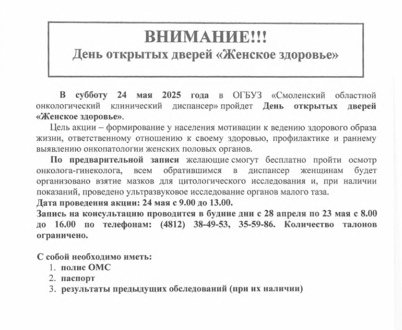 24 мая 2025 года День открытых дверей "Женское здоровье"