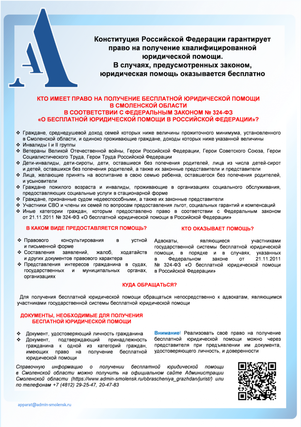 Кто имеет право на получение бесплатной юридической помощи в Смоленской области в соответствии с федеральным законом № 324-ФЗ "О бесплатной юридической помощи в Российской Федерации"?